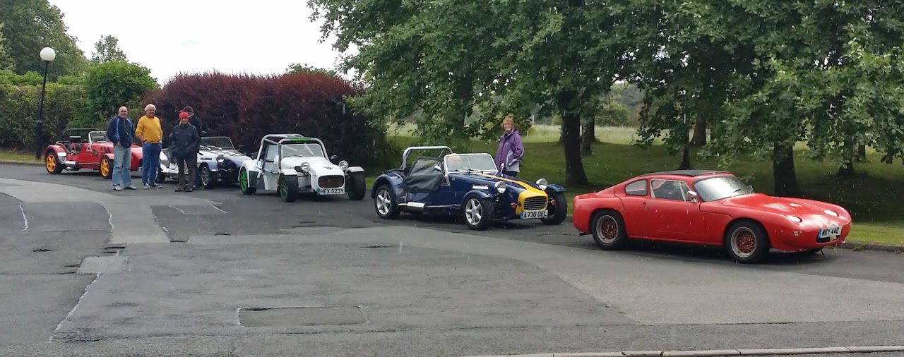 Having followed the weather forecast, an impromptu run was organised on Sunday 21st June 2015 heading from Seaton Burn to Dobbies at Ponteland.  A handful of cars and members duly met up around 9.30.  The accompanying photo shows the cars, line astern and ready for the off.  Unfortunately, the newcomer at the head of the line didn't feel up to the run to Dobbies so having introduced herself to the others she made her excuses and watched them set off.