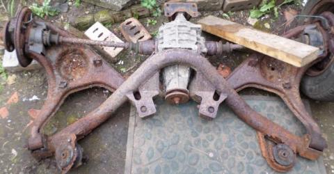 I have stripped out the front suspension again all unused and cleaned painted and re-assembled loosely as I am doing some strengthening and adding some grease nipples as I go. I am also trying to replace all bolts with Stainless. I have started fitting the pedal-box but again that needs strengthening on it's mountings. The fun really started when I started to strip the rear end, all the bolts were not only seized but the heads had rusted so much that they were round. So out with the angle grinder and set about removing the back axle that way- one new angle grinder i managed to remove the complete rear subfame which is completely rotten- it doesn't matter as i am putting the one out of the Exmo in when I take it off the road. Started addling angle iron strengthening to the roll cage mounts, Seat belt mounts and rear shocker mounts-that will keep me busy for a few days then it will be back to the front end to finish off the mods and get everything bolted in place properly.